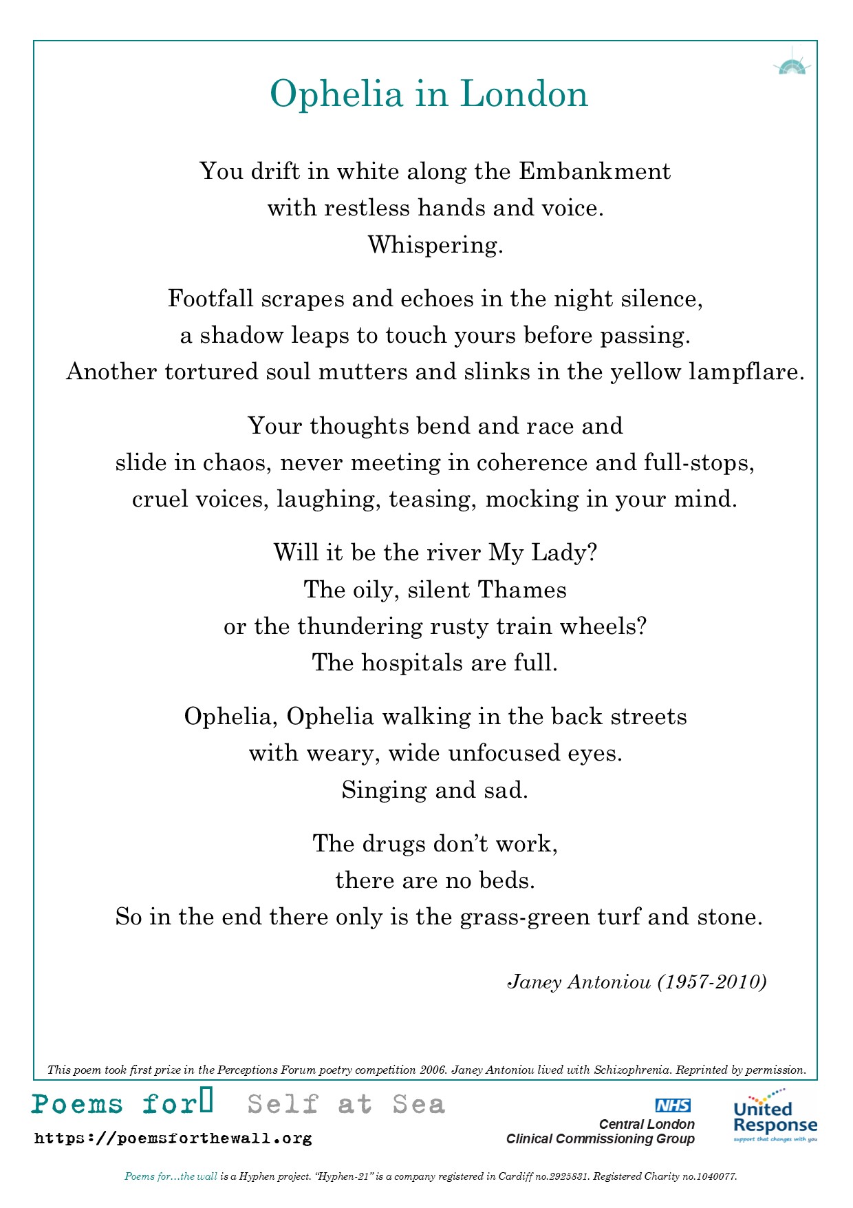 “The RCN is backing this project which supplies poems free of charge for use in hospitals and health centres up and down the country.”