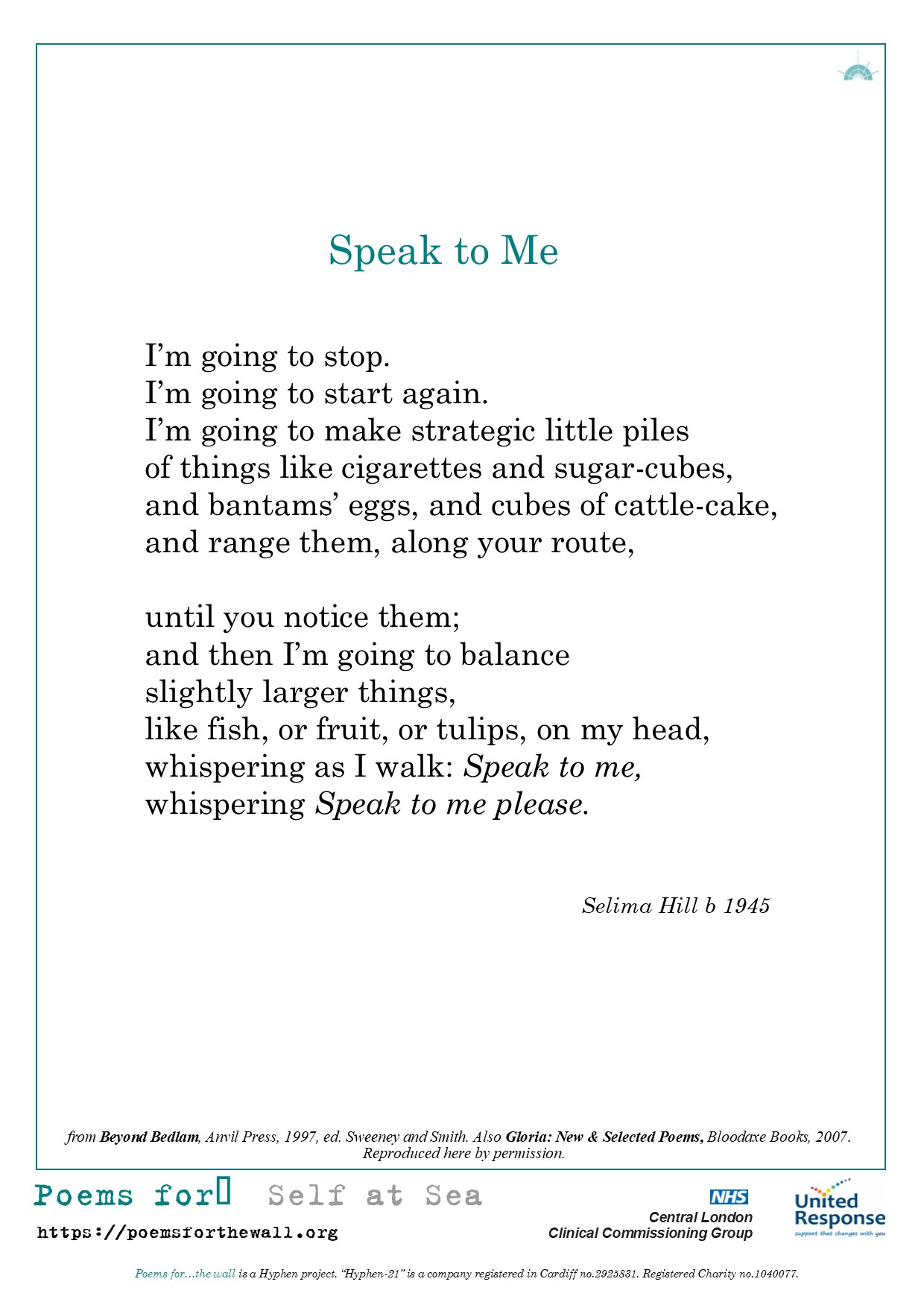 “It is good news that the NHS are using the poems so well, and to know they are reaching the right audiences.”